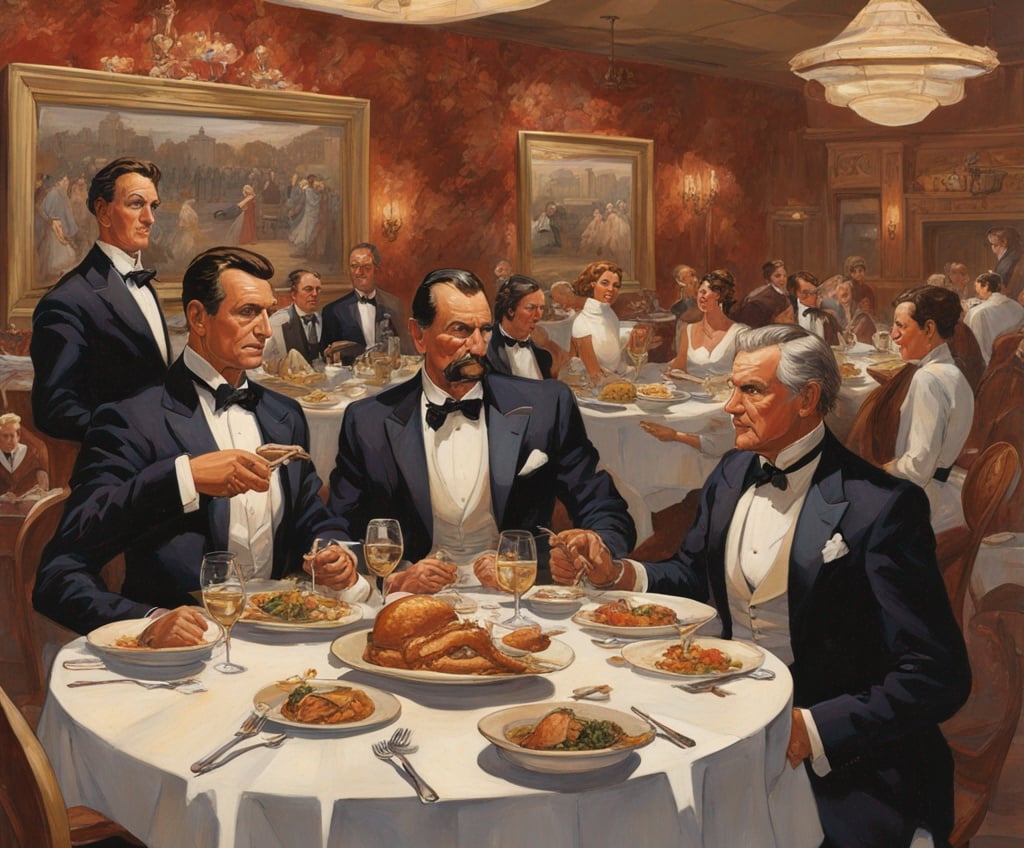 The mid-20th century represented what many consider the golden age of formal dining. Meals were events, particularly in upscale establishments and private clubs like the one depicted in our painting. Dining out meant dressing appropriately—often in black tie for men and elegant dresses for women. The restaurant experience was characterized by: