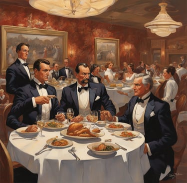 The painting before us captures a scene that feels increasingly distant from today's reality—gentlemen in formal attire gathered around a white-clothed table, engaging in conversation over an elaborate meal, not a smartphone in sight. This image serves as our starting point for exploring how the dining experience has evolved across generations, with particular focus on the contrast between traditional dining culture and Gen Z's revolutionary approach to eating.
