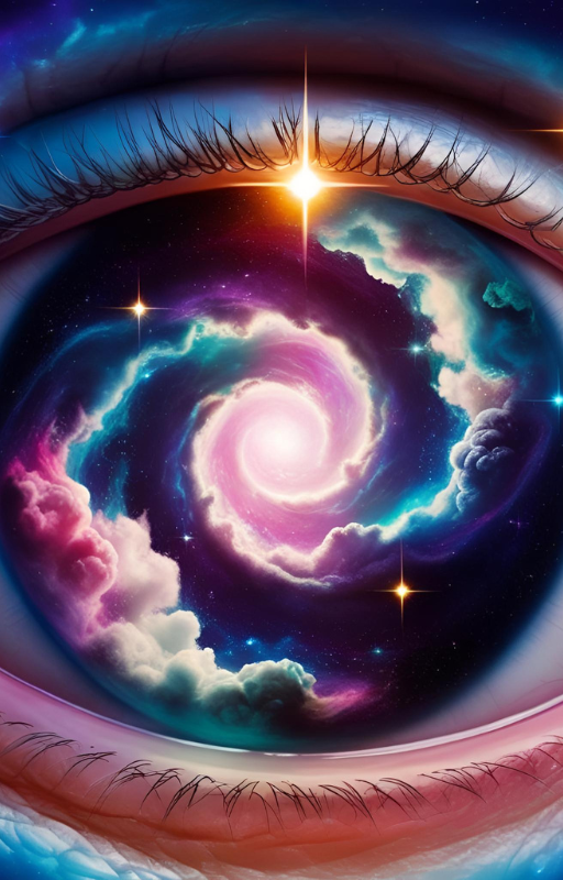 That image reminds me of how the entire cosmos can be reflected in a single moment of perception. The swirling patterns and colors surrounding that dark center mirror the way our imagination wraps around reality, coloring it with meaning and significance. The resemblance between a nebula and the patterns of human thought isn't coincidental.